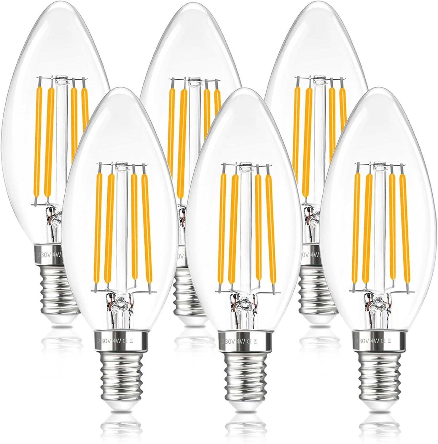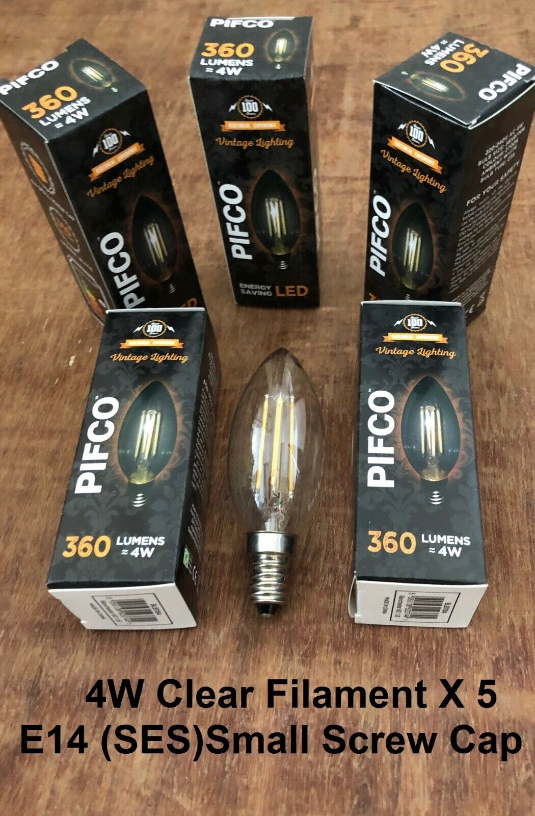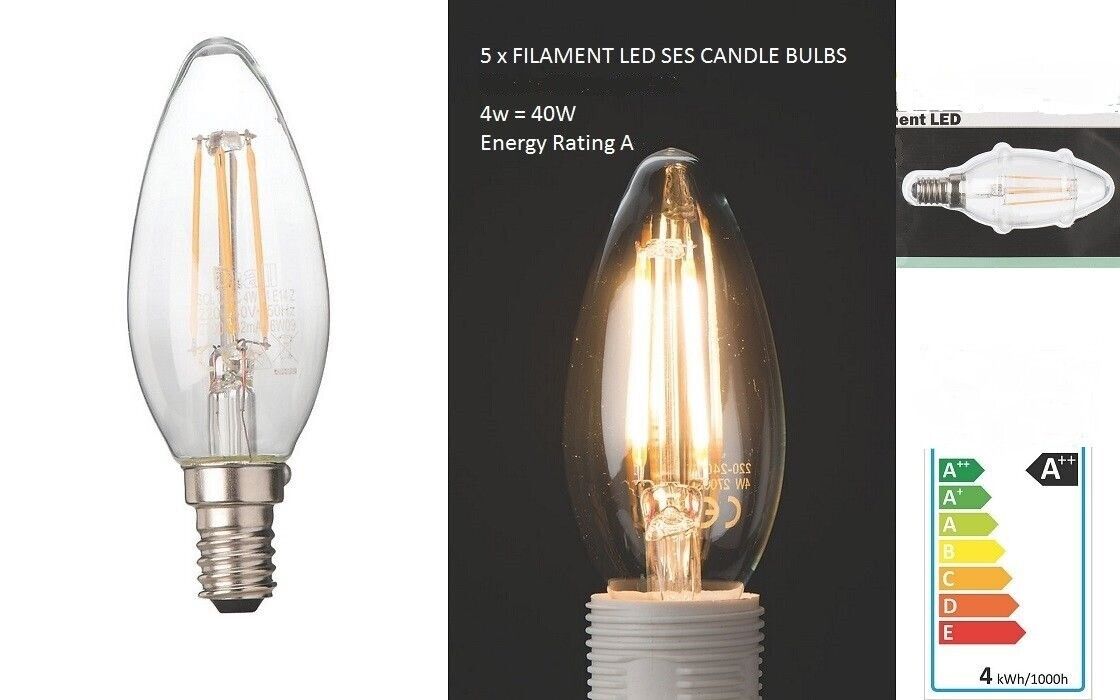 Pack of 5 E14 LED Filament Candle Light Bulb 4W Ambient White SES 360Lm