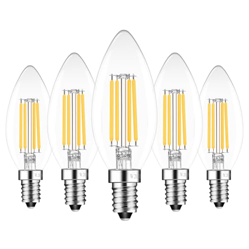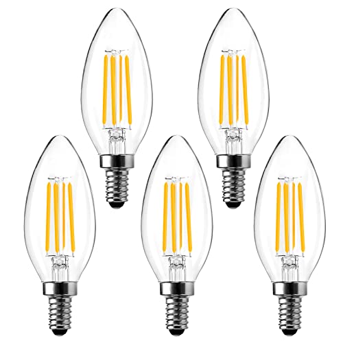 BRIMAX E14 LED Candle Bulbs Dimmable 4W, 40W Equivalent, Soft Warm White 2700K, 400lm, Small Edison Screw SES Chandelier Bulbs, C35 Vintage Filament Energy Saving Candelabra Bulb, 5Pack