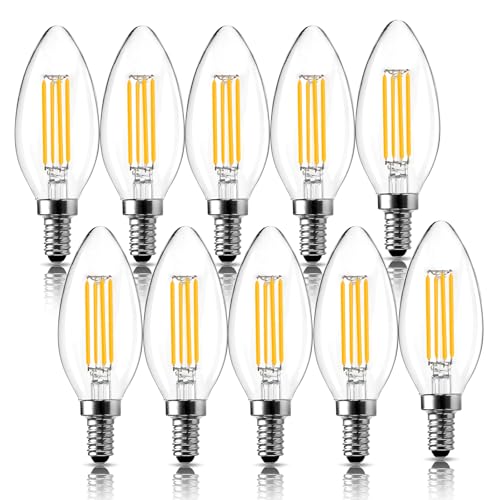 LangPlus+ E14 LED Light Bulb, Dimmable Candle Bulbs, 4W, 40W Equivalent Small Edison Screw SES E14 Bulb, Warm White 2700K, C35 LED Filament Bulb for Chandeliers, Ceiling Fan, 10 Pack
