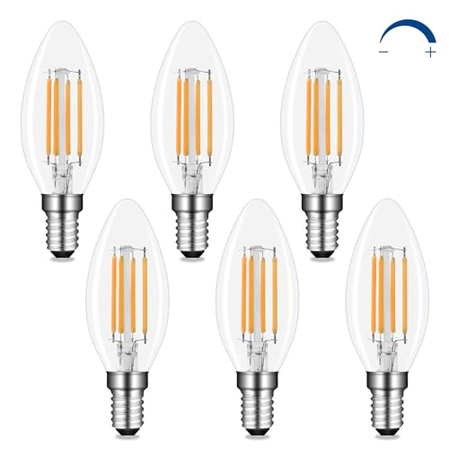 E14 LED Candle Bulbs Dimmable Warm White 2700K, 400LM, 4W Filament LED Equivalent E14 40W Incandescent, AC 220V C35 SES Small Screw Candle Light Bulb Clear for Chandelier, 6pcs