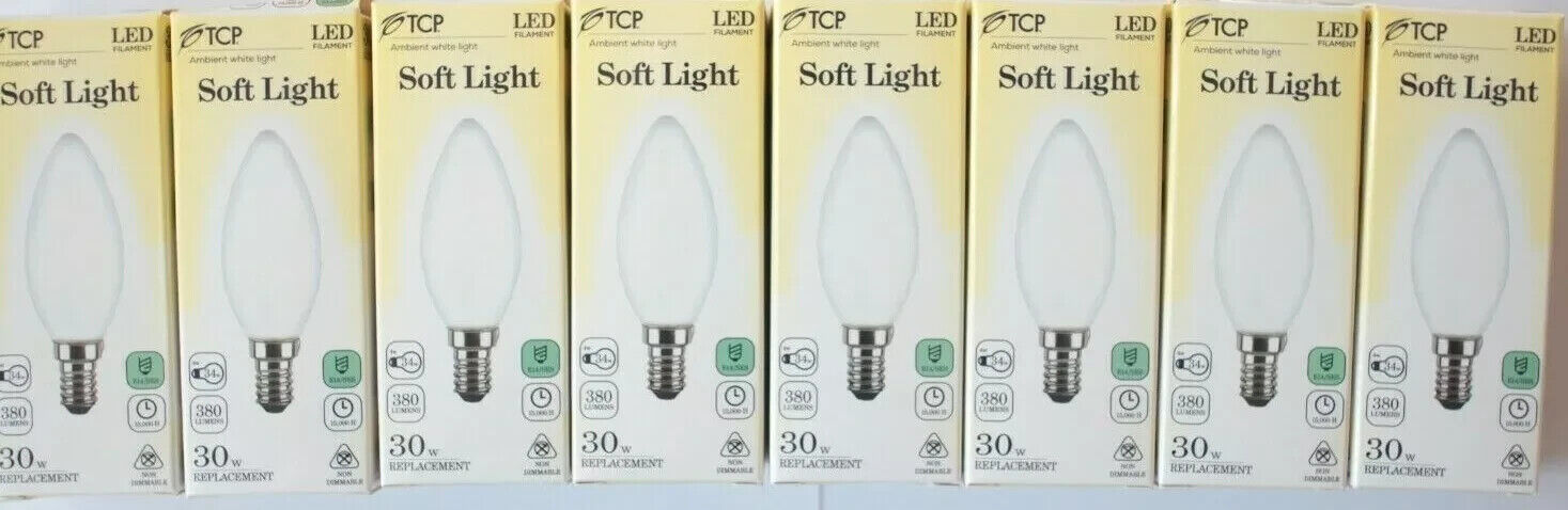 LED Bulb Filament Candle Soft Light 4W E14/SES White Pack of 8