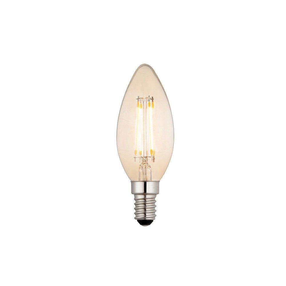 LED Filament Lamp Bulb 4W Candle Shaped E14 LED Amber Tinted Glass Warm White