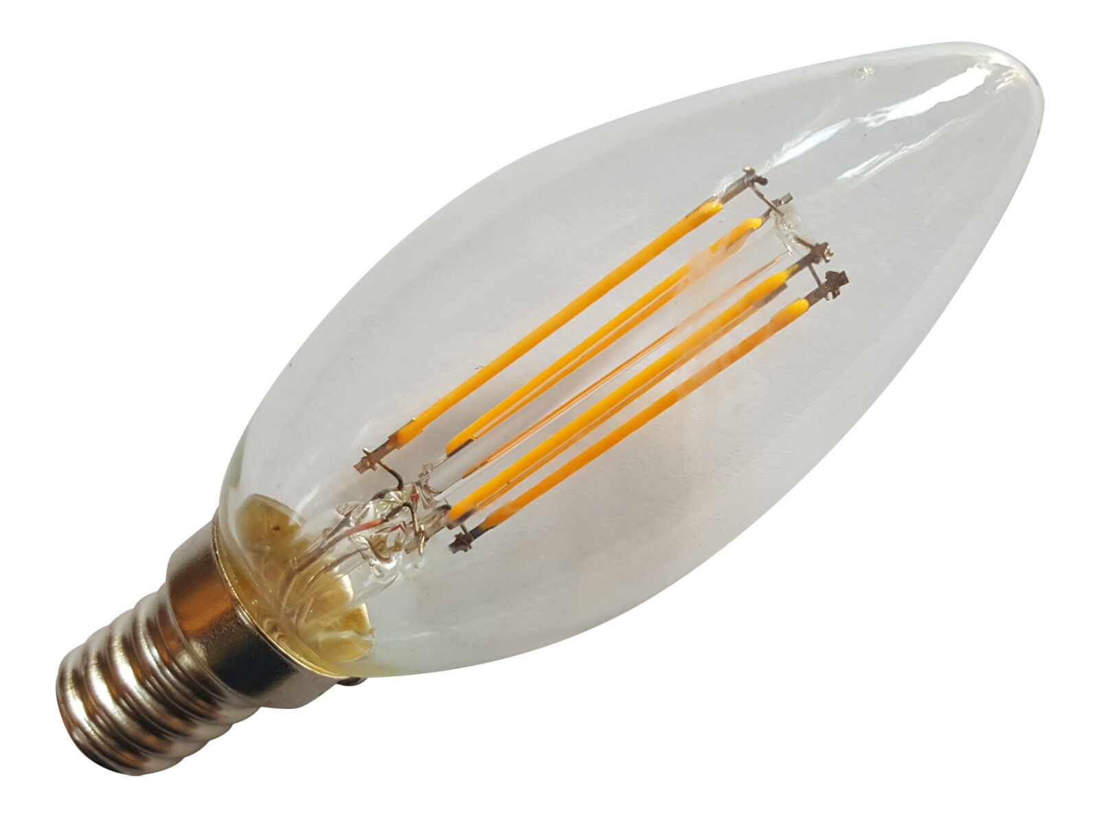 LED Filament Lamp Bulb 4W Candle Shaped E14 LED Clear Glass 2700k Warm White