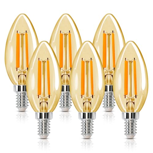 Aigostar E14 LED Light Bulb, LED Candle Bulbs Small Screw, 4W 400lm SES E14 Candle Bulb, 35W Equivalent SES Bulb Vintage, Warm White 2200K C35 330°Beam Angle, Amber Filamen Pack of 6