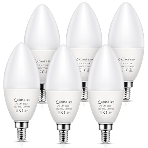LOHAS E14 LED Light Bulbs, 7W SES E14 Candle Bulb, Small Screw Light Bulbs, Equivalent to 60W Incandescent Bulb, Warm White 3000K, Non-dimmable, 600LM, 180° Beam Angle, 220-240V, Energy Saving, 6 Pack