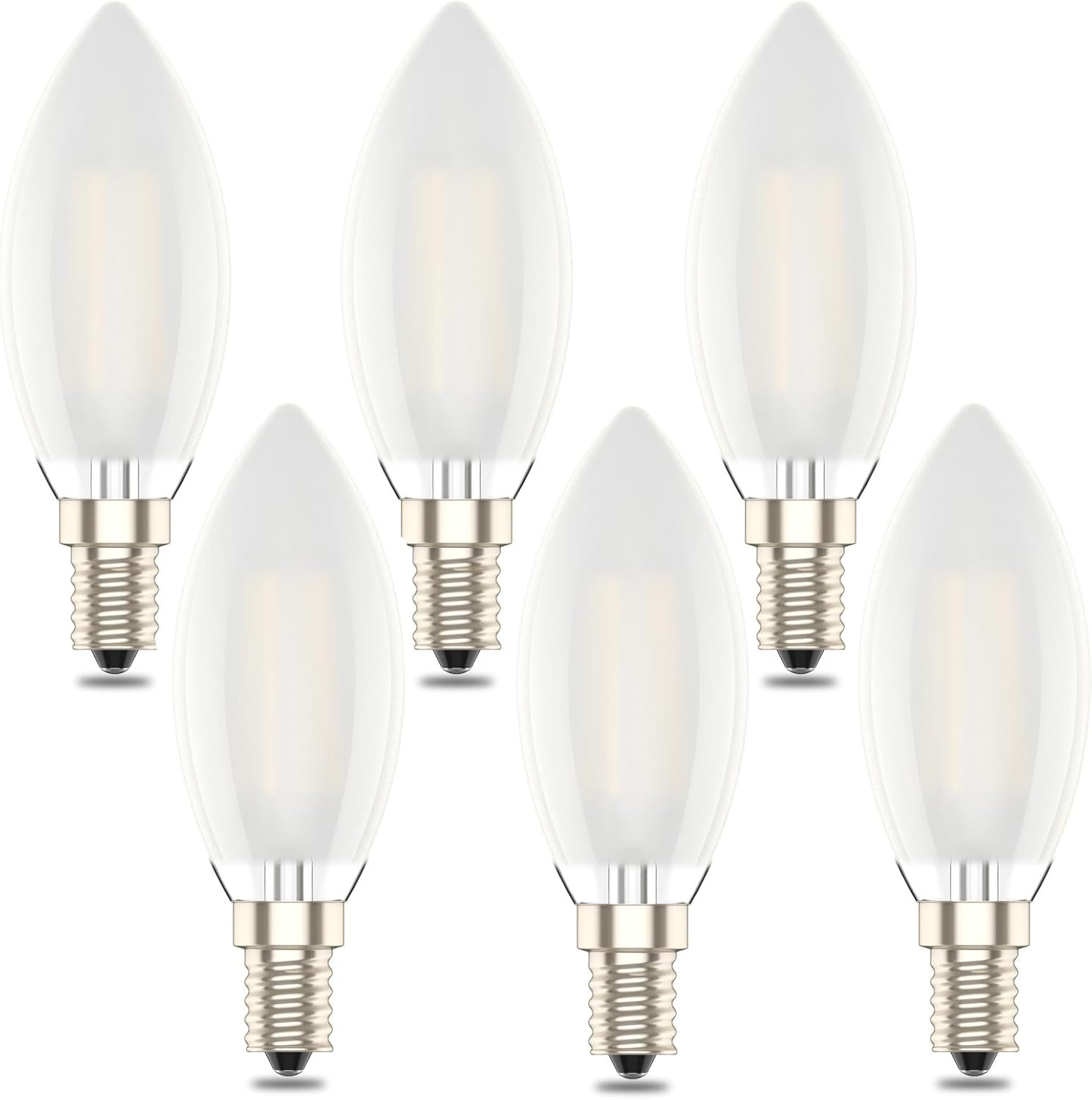 E14 Dimmable Led Candle Bulb,SES Small Edison Screw,6W Equivalent 60w, Warm Whi
