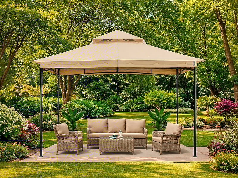 4 x 3.35Metre Steel Frame Patio Gazebo Canopy with 2 Tier Roof