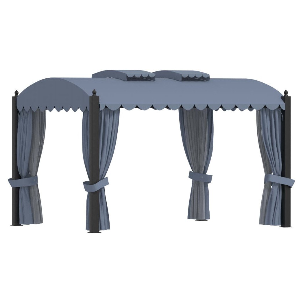 Outsunny 4 x 3 m Aluminum Garden Gazebo, Double Roof Outdoor Gazebo Canopy Shelter with Netting & Curtains for Garden, Lawn, Backyard and Deck, Cream