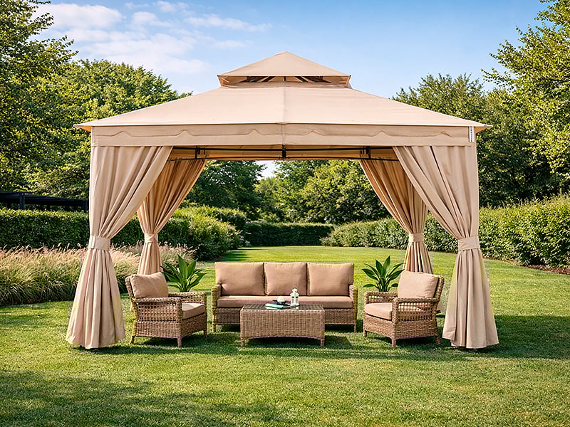 Gazebo Horus w/curtains, 3.4x3.4 m, Beige