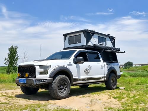 WYKYG Pop-Up Hard Shell Rooftop Tent, Aluminum Alloy Honeycomb Panel Shell, Quick Automatic Opening, 2.3m Telescopic Ladder for 4x4 Offroad Camping