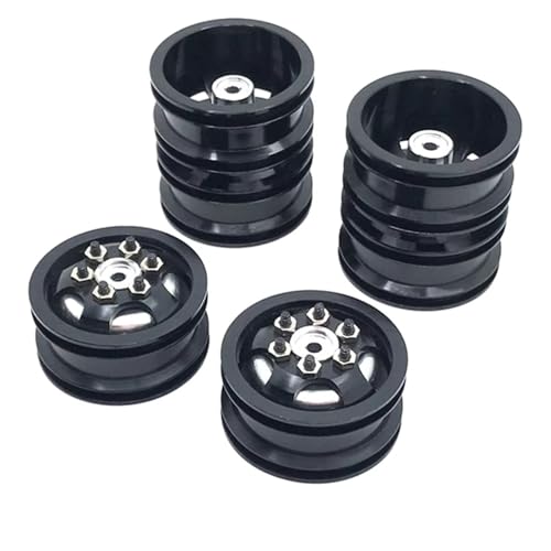 RC Car Tires Wheels Tyres Compatible With WPL C14 C24 B14 B24 B16 For MN78 For MN99S 4X4 4WD 1/16 1/12 RC Truck Car Part Metal Beadlock Wheel Hub Rims With Tires(Black)