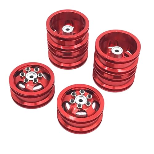 RC Car Tires Wheels Tyres Compatible With WPL C14 C24 B14 B24 B16 For MN78 For MN99S 4X4 4WD 1/16 1/12 RC Truck Car Part Metal Beadlock Wheel Hub Rims With Tires(Red)