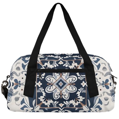Flame Feather Kids Duffle Bag Boys Girls Small Sport Dance Gym Bag for Overnight Travel Weekender Carry On, Classic Blue Print, 18.5"L x 9.4"W x 7.8"H