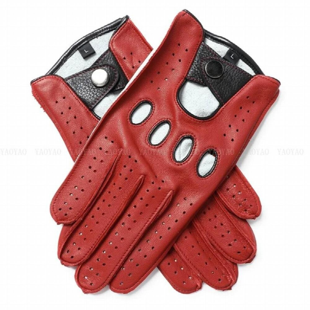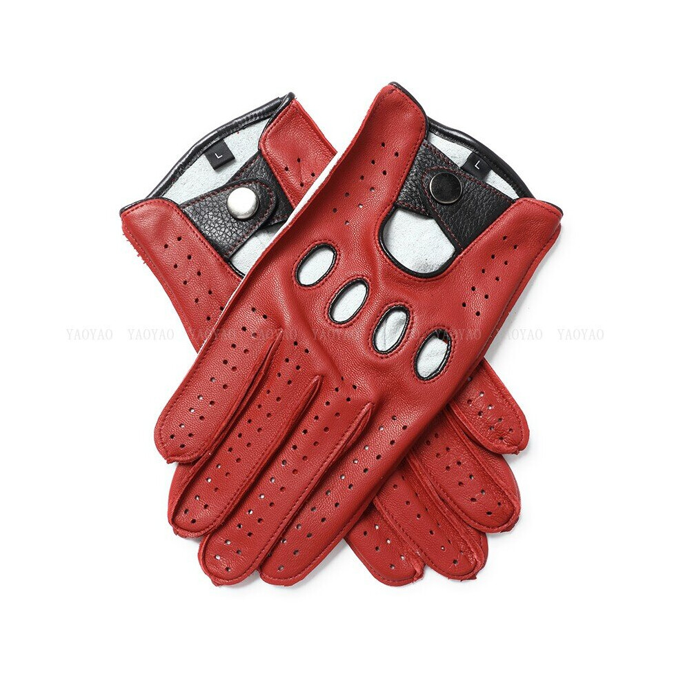 (Red-XL(Palm 23 24.5) XL) Guantes Moto Men Leather Glove Male Classic Red Patchwork Thin Luvas Driving Gym Deri Eldiven With Holes