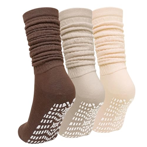 ZAKASA Women Anti-Slip Slouch Socks: Anti Slip Long Cotton Seamless Socks for Yoga Pilates Gym UK 2.5-5 Classic 3 Pairs