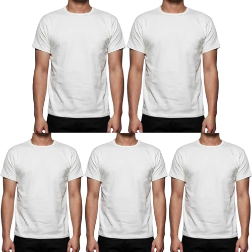 Gaffer Mens T Shirts Plain Crew Neck Cotton Top Tees Workwear Undershirts Gym Running Workout Classic Basic T-Shirt Short Sleeve 5 Pack - White S