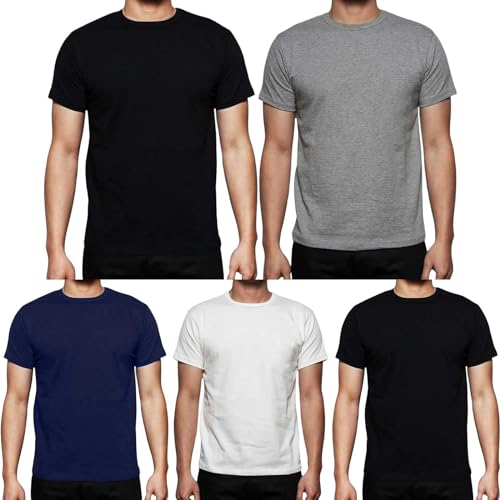 Gaffer Mens T Shirts Plain Crew Neck Cotton Top Tees Workwear Undershirts Gym Running Workout Classic Basic T-Shirt Short Sleeve 5 Pack - Assorted S