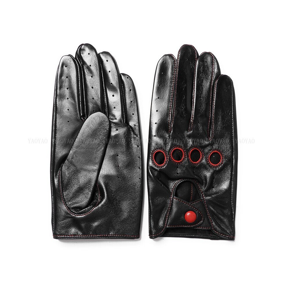 (Red-L (Palm 21.5 23) L) Guantes Moto Men Leather Glove Male Classic Red Patchwork Thin Luvas Driving Gym Deri Eldiven With Holes