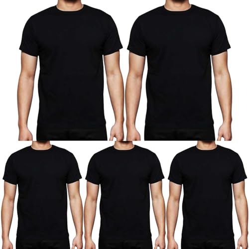 Gaffer Mens T Shirts Plain Crew Neck Cotton Top Tees Workwear Undershirts Gym Running Workout Classic Basic T-Shirt Short Sleeve 5 Pack - Black M