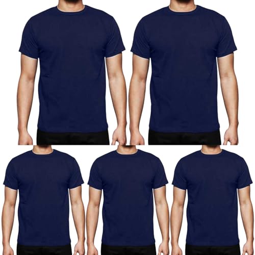 Gaffer Mens T Shirts Plain Crew Neck Cotton Top Tees Workwear Undershirts Gym Running Workout Classic Basic T-Shirt Short Sleeve 5 Pack - Navy L
