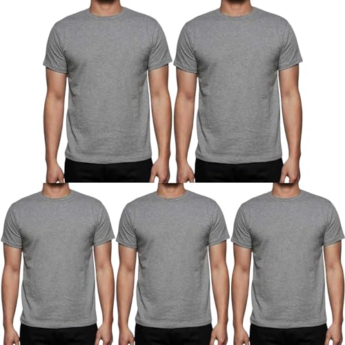 Gaffer Mens T Shirts Plain Crew Neck Cotton Top Tees Workwear Undershirts Gym Running Workout Classic Basic T-Shirt Short Sleeve 5 Pack - Grey M