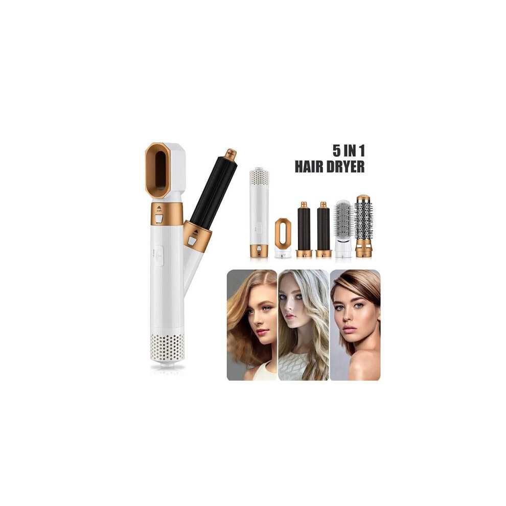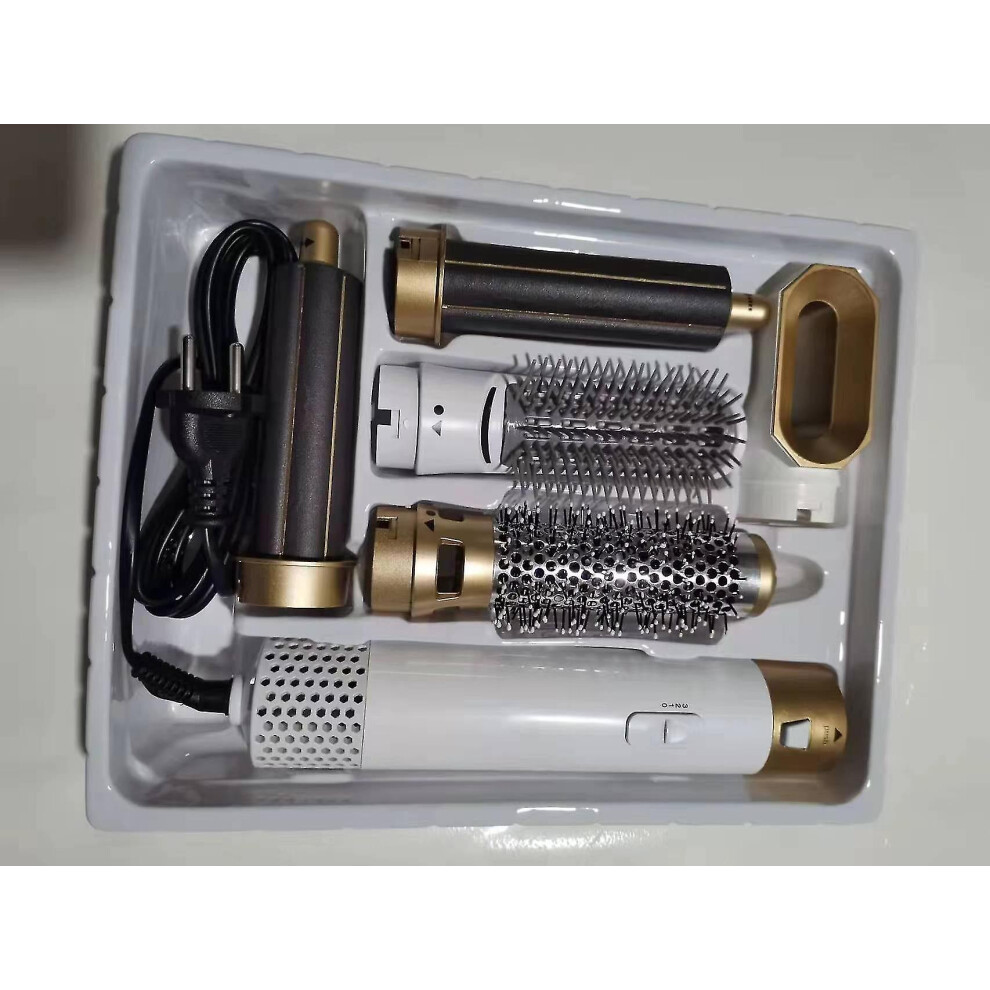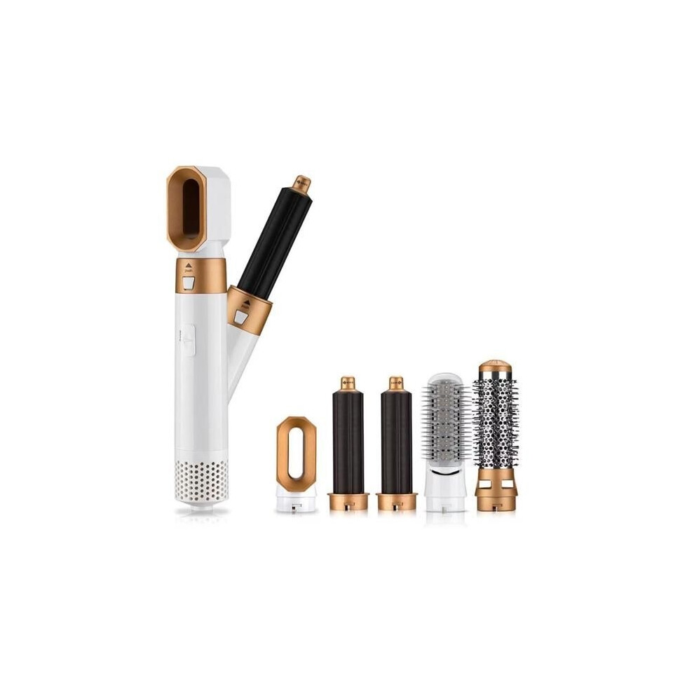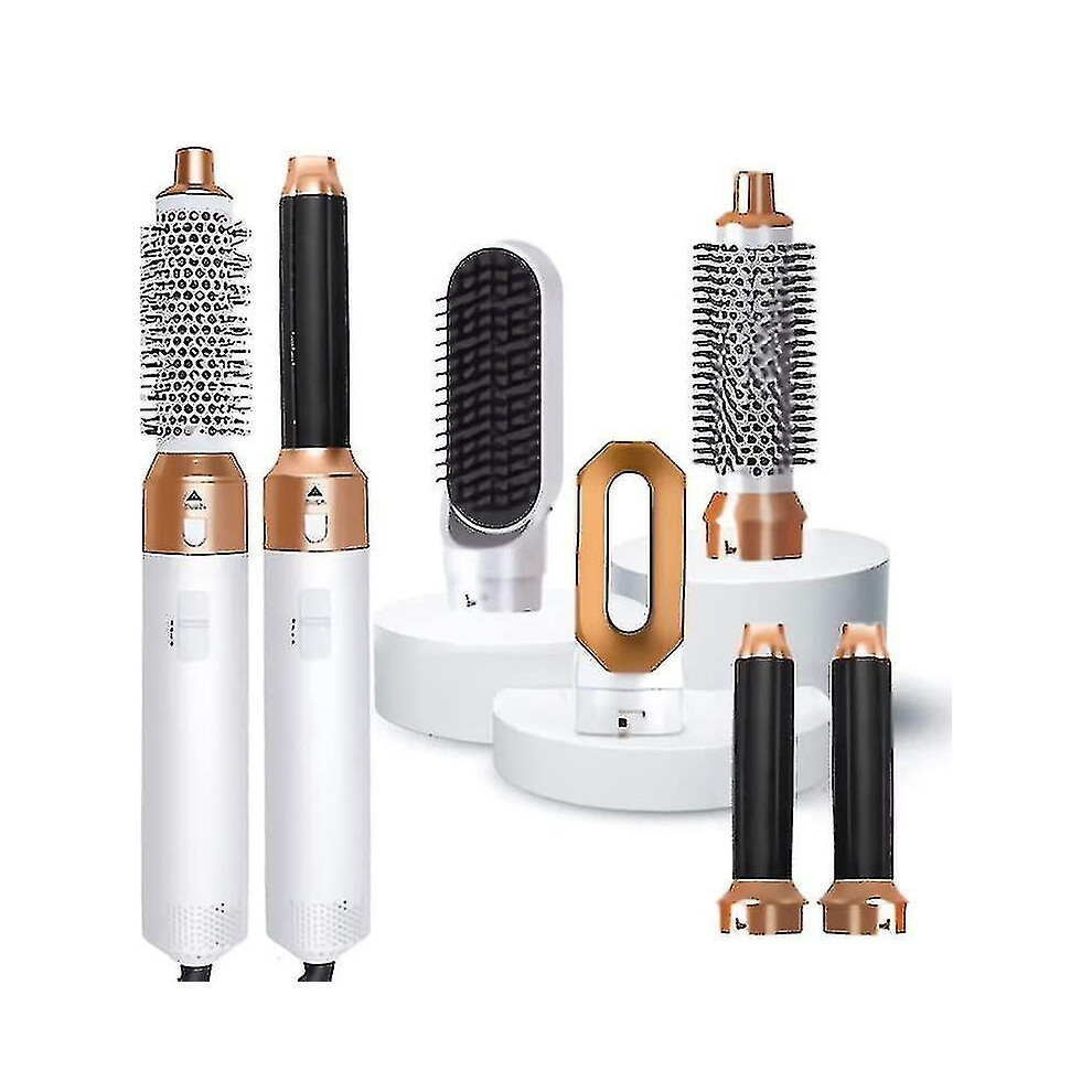 (As show, One size) 5 In 1 Hair Styler,hot Air Brush Hair Dryer,straighteners Wrapper (white Gold)