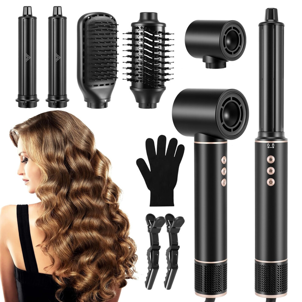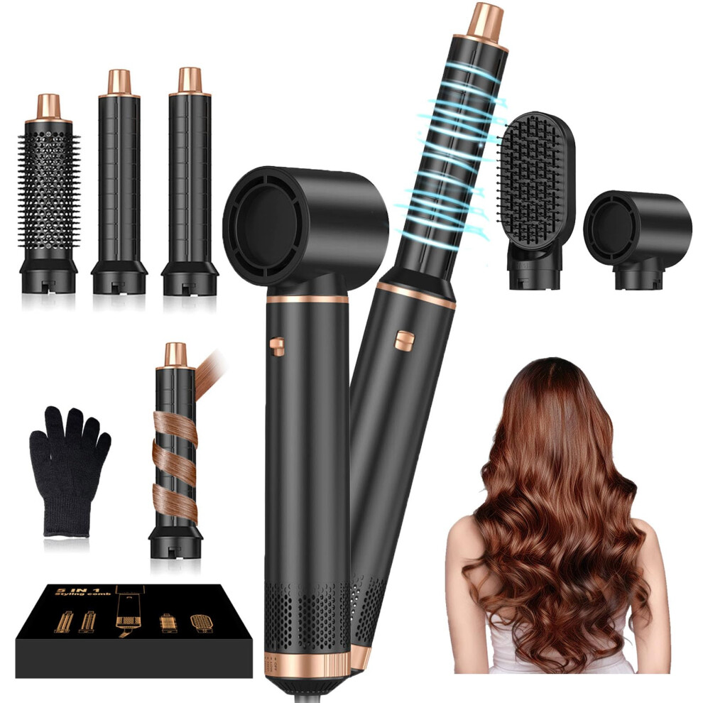 5 in 1 Air Styler Hair Dryer Brush with Auto Curling Wands Multi-Function Black