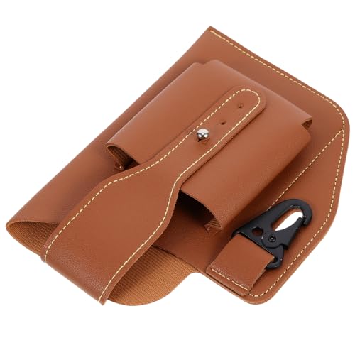 FOMIYES Men’s Leather Waist Pouch 6.5-inch Mobile Phone Bag with Key Holder Yellow Brown Multi-Function Cellphone Storage for Outdoor Sports and Travel
