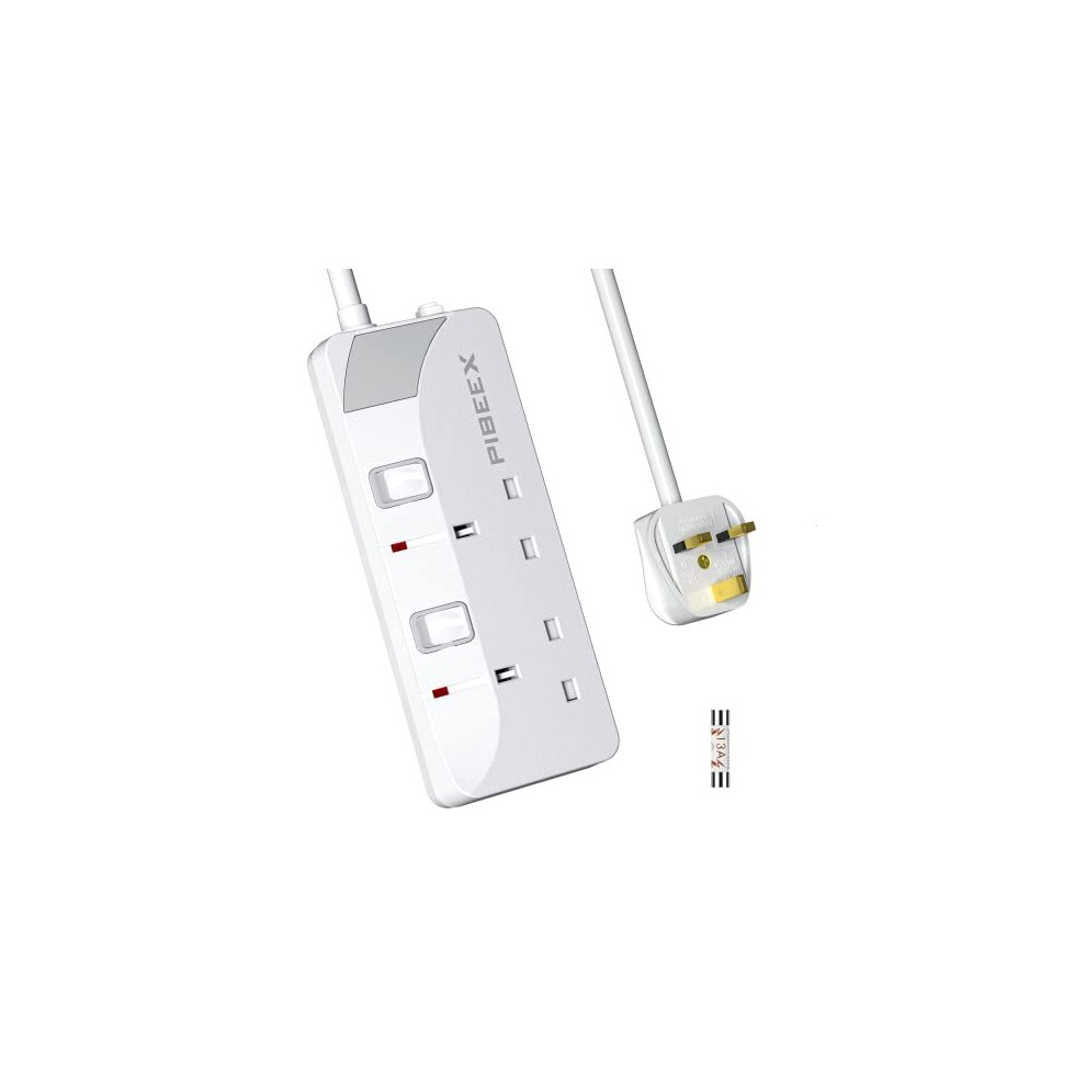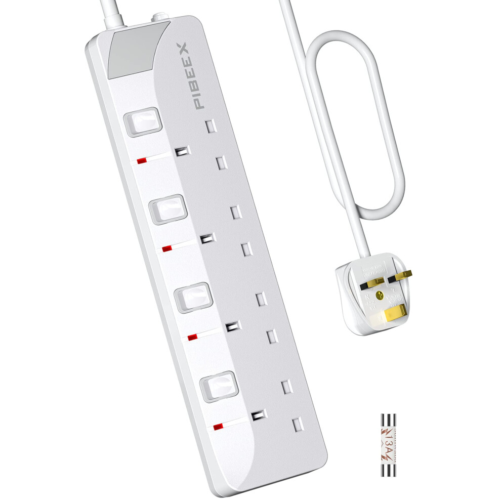 PIBEEX Extension Lead 4 Way Multi Plug Extension Sockets with Individual Switches Wall-Mounted Power Strip 5 Meter Long Extension Cord 13A Fused UK