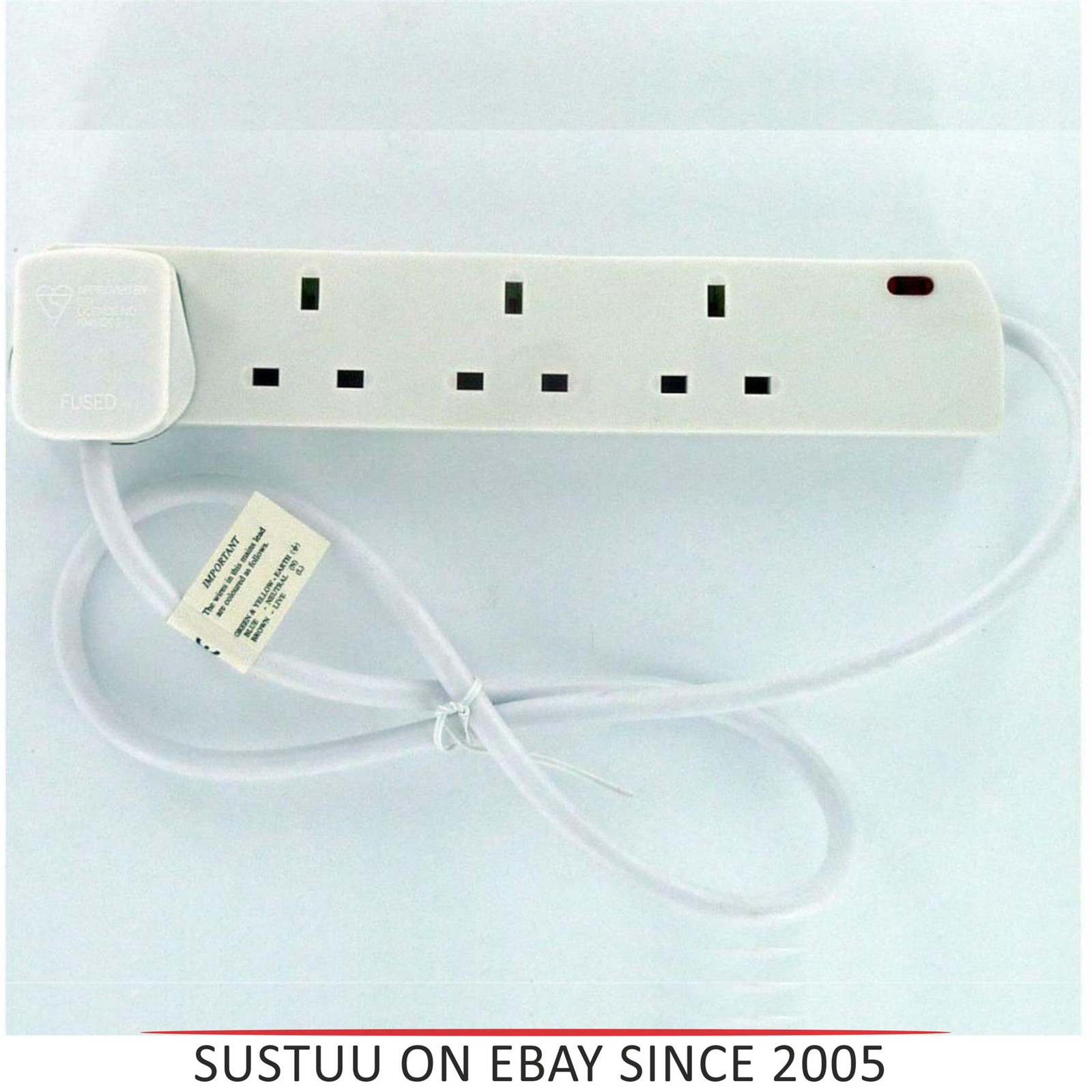 3 Way/Gang 0.5 Meter Extension Lead Cable Socket UK Mains Power Electric Plug