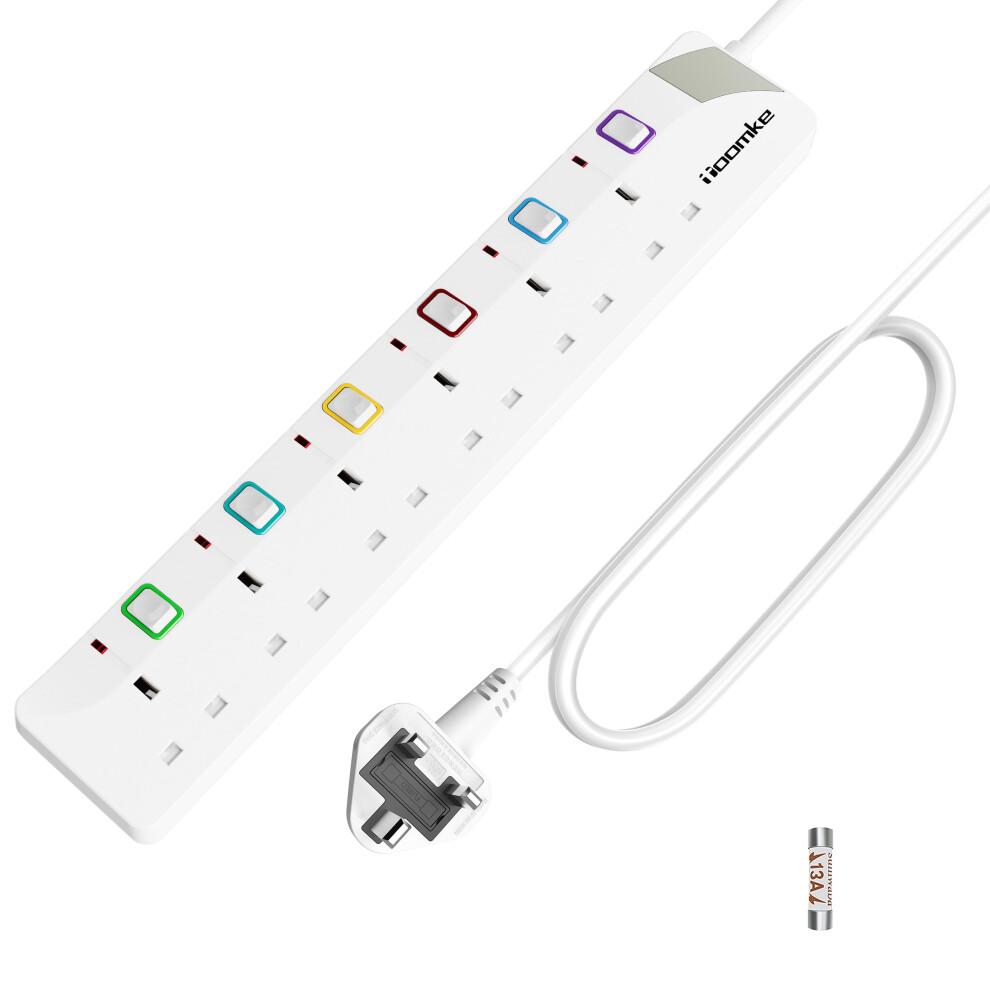 Toomke Extension Lead with Individual Switches 5M, 6 Way Power Strip Wall Mountable Plug Socket Extension 13A Fused UK Plug 5 Meter Long Extension