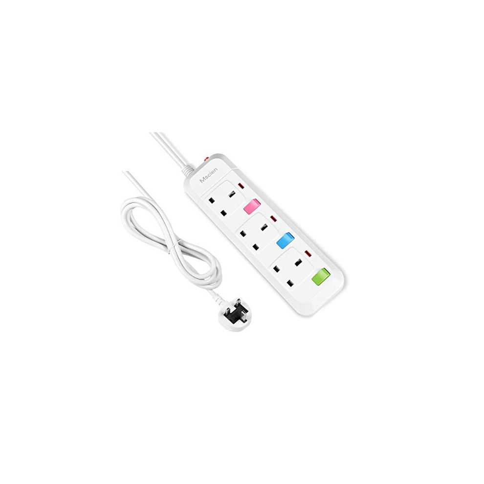 3M Extension Lead 5 Way Individually Switches, Mscien Extension Sockets Wall Mountable Extension Cord with 3 Meter Cable (Including Main Product) 5 Ga