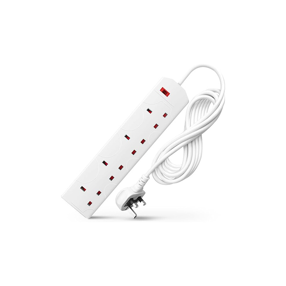 Extension Lead 4 Way Multi Plug Extension Sockets with Individual Switches Wall-Mounted Power Strip 5 Meter Long
