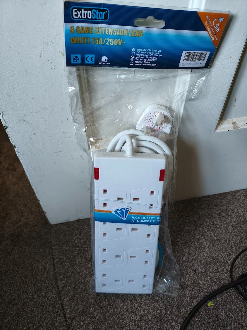 8 Way Mains Extension Lead 5 Meter Gang Socket Power 5M Metre Cable 13A White
