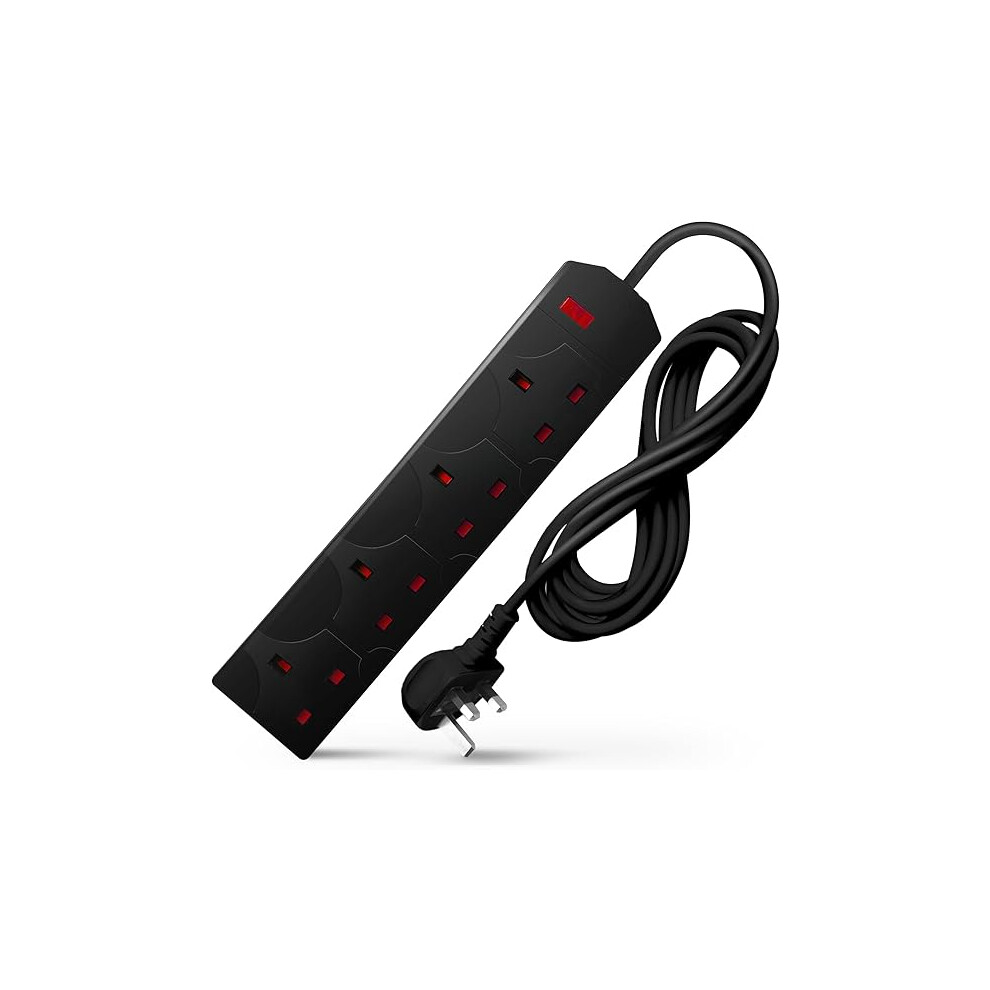 DESIRETECH Black 5 Meter Electric Extension Lead - 4 Gang, 3 Pin Cable with UK Plug ,Wall Mountable & Multi Socket