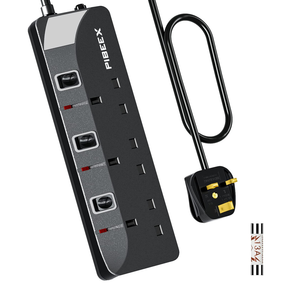 PIBEEX Extension Lead 3 Way Plug Sockets with Individual Switches Wall Mountable Power Strip 5 Meter Long Extension Cable 13A Fused UK Plug 3250W