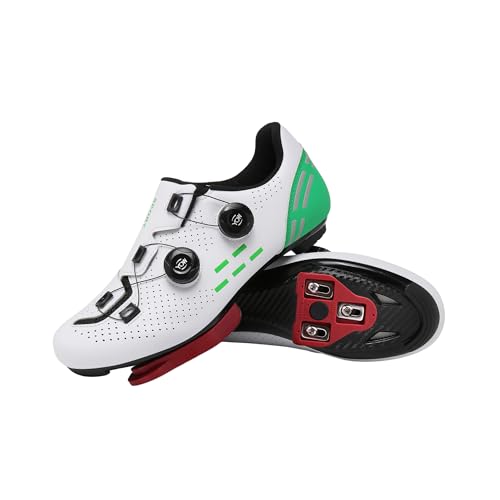 Cycling Shoes Mens Road MTB Cycling Shoes SPD-SL Compatible with Peloton Bike Indoor Outdoor Road Bike Riding Shoes Men's & Women's Black (White Green-Road-Delta,5)