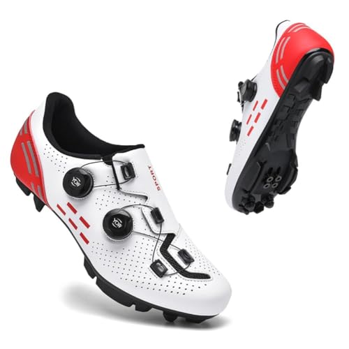 Cycling Shoes Mens Road MTB Cycling Shoes SPD-SL Compatible with Peloton Bike Indoor Outdoor Road Bike Riding Shoes Men's & Women's Black (White Red - MTB,5)