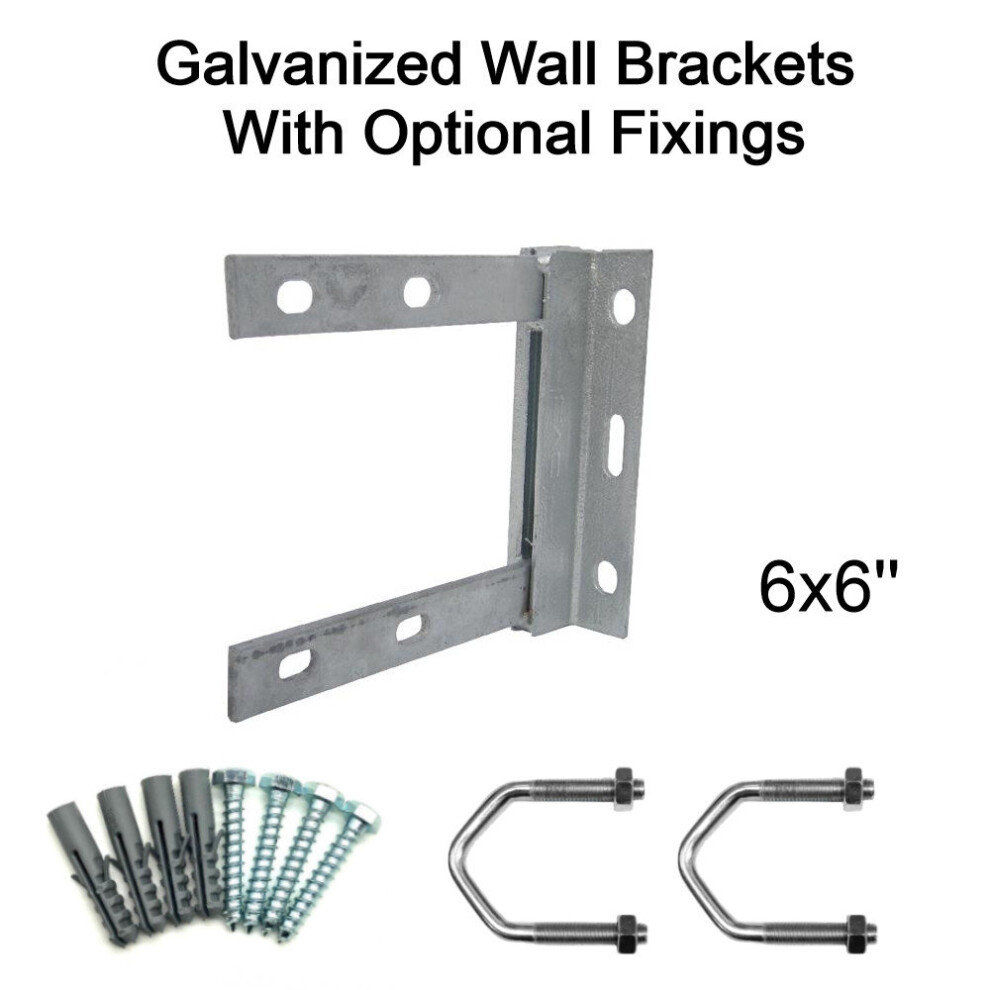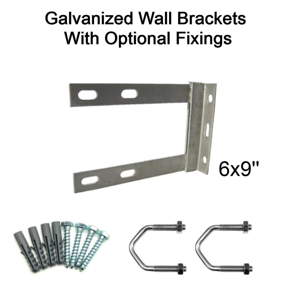 (6'' inch x 9'' inch, 2.5'' U Bolts with 50mm Bolt & Rawlplugs) TV Aerial Galvanised Steel Wall Mounting Bracket for Pole Mast DAB FM SATELLITE