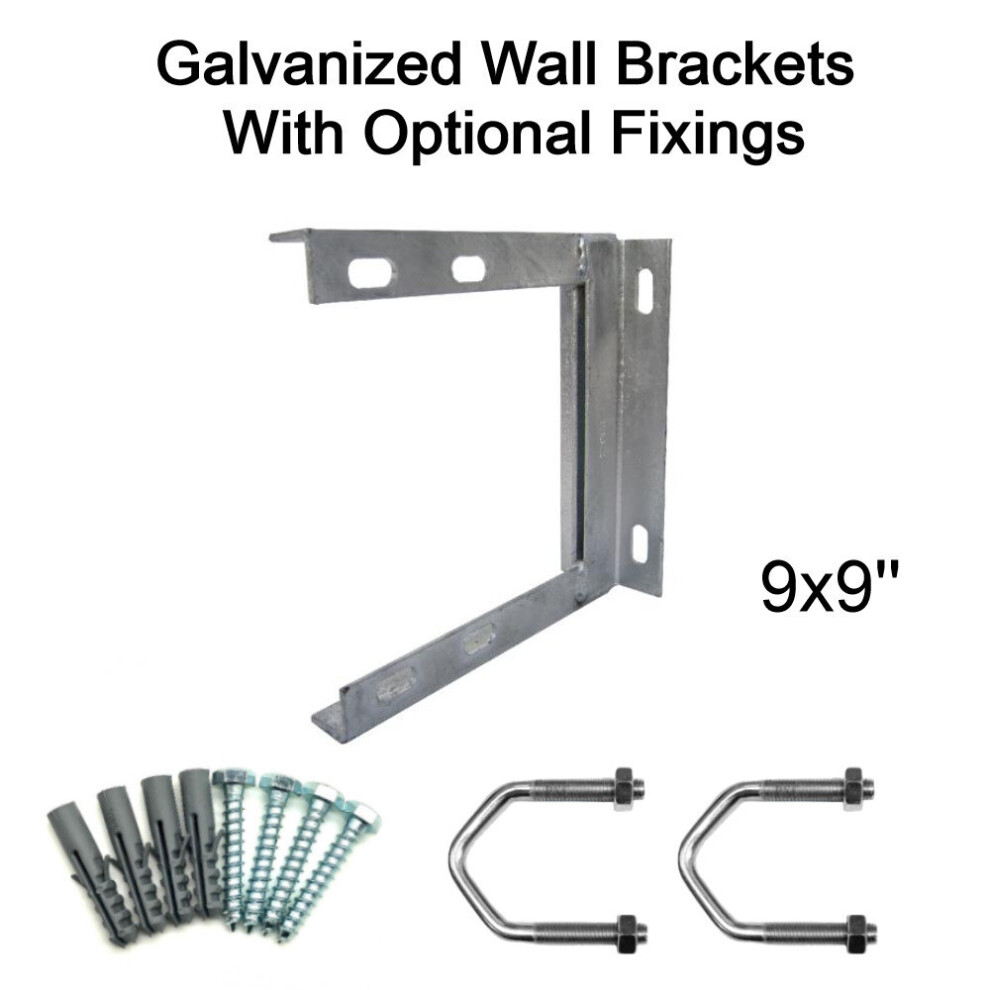 (9'' inch x 9'' inch, 2.5'' U Bolts with 50mm Bolt & Rawlplugs) TV Aerial Galvanised Steel Wall Mounting Bracket for Pole Mast DAB FM SATELLITE