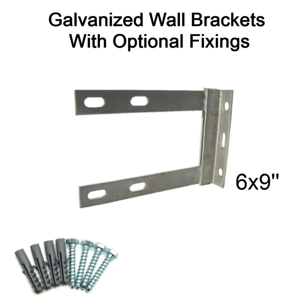 (6'' inch x 9'' inch, 50mm Bolt & Rawlplugs (set of 4)) TV Aerial Galvanised Steel Wall Mounting Bracket for Pole Mast DAB FM SATELLITE