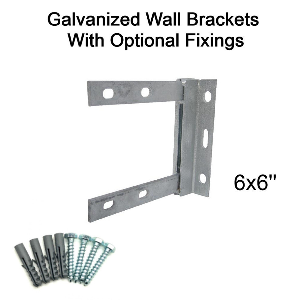 (6'' inch x 6'' inch, 50mm Bolt & Rawlplugs (set of 4)) TV Aerial Galvanised Steel Wall Mounting Bracket for Pole Mast DAB FM SATELLITE