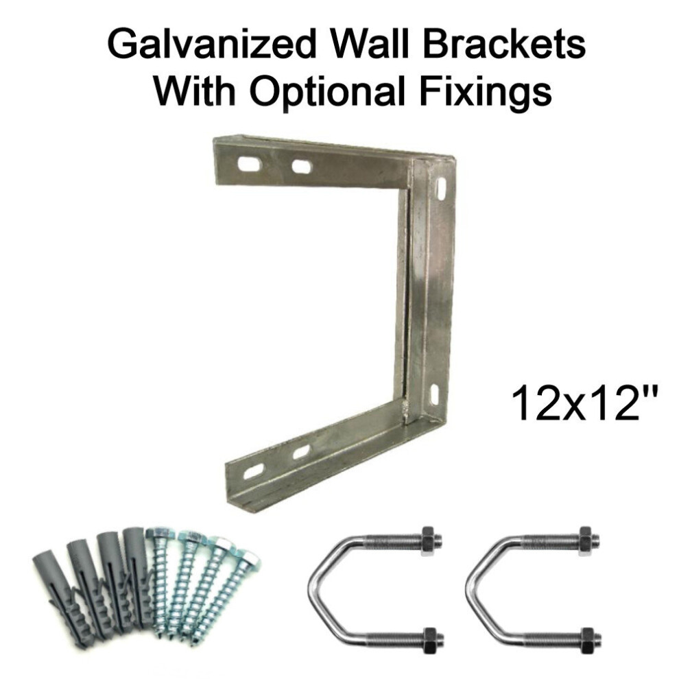 (12'' inch x 12'' inch, 2.5'' U Bolts with 50mm Bolt & Rawlplugs) TV Aerial Galvanised Steel Wall Mounting Bracket for Pole Mast DAB FM SATELLITE