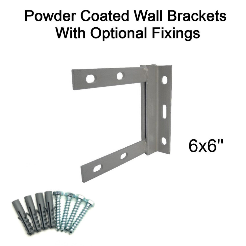 (6'' inch x 6'' inch, 50mm Bolt & Rawlplugs (set of 4)) Powder Coated Steel TV Aerial Wall Mounting Bracket for Pole Mast SAT UHF FM DAB