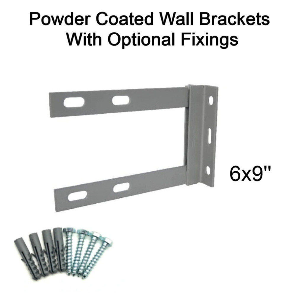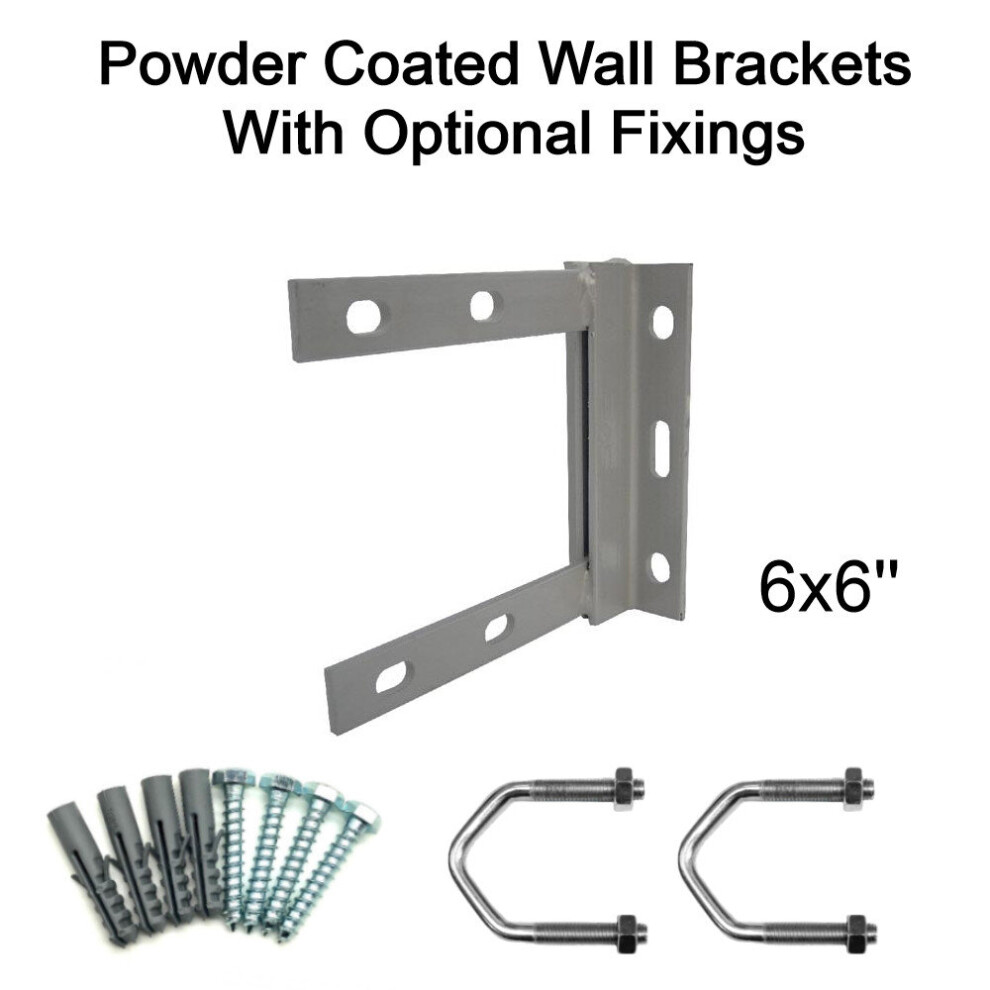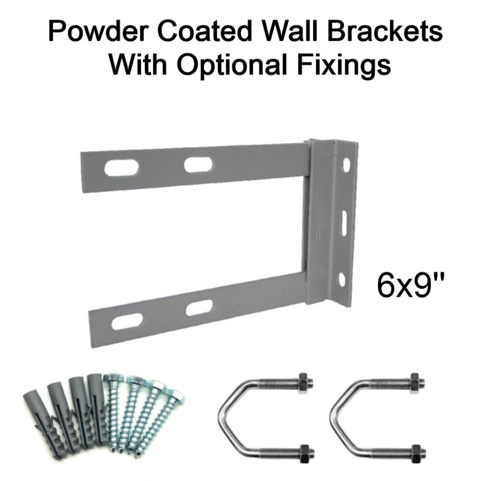 (6'' inch x 9'' inch, 2.5'' U Bolts with 50mm Bolt & Rawlplugs) Powder Coated Steel TV Aerial Wall Mounting Bracket for Pole Mast SAT UHF FM DAB