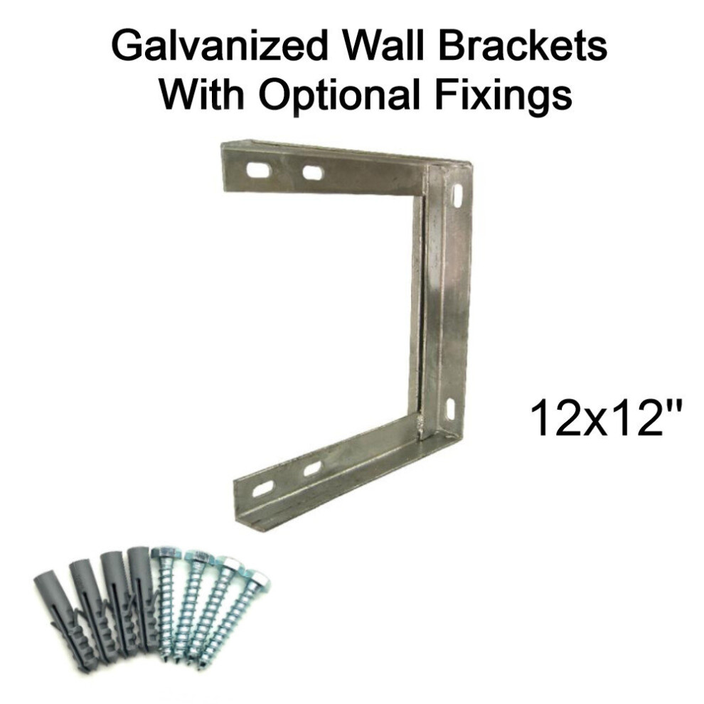 (12'' inch x 12'' inch, 50mm Bolt & Rawlplugs (set of 4)) TV Aerial Galvanised Steel Wall Mounting Bracket for Pole Mast DAB FM SATELLITE