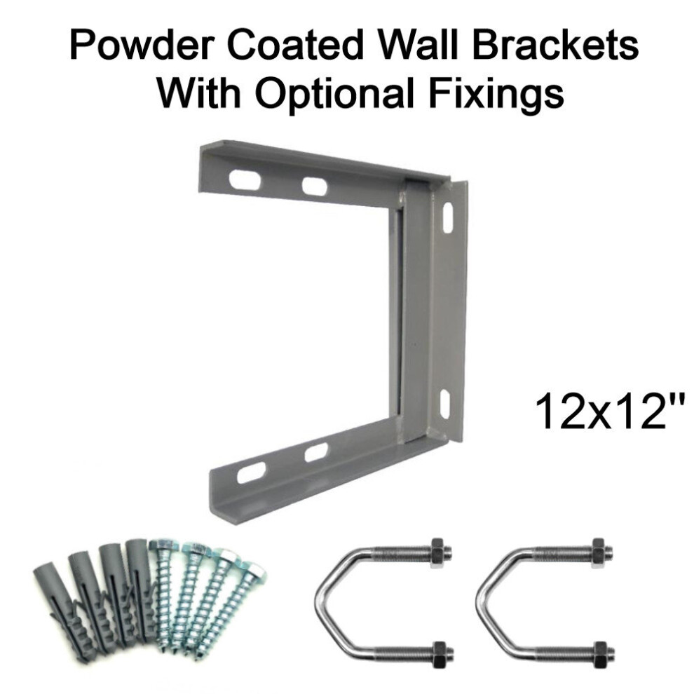 (12'' inch x 12'' inch, 2.5'' U Bolts with 50mm Bolt & Rawlplugs) Powder Coated Steel TV Aerial Wall Mounting Bracket for Pole Mast SAT UHF FM DAB