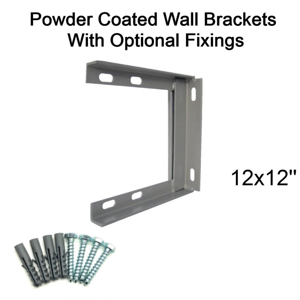 (12'' inch x 12'' inch, 50mm Bolt & Rawlplugs (set of 4)) Powder Coated Steel TV Aerial Wall Mounting Bracket for Pole Mast SAT UHF FM DAB