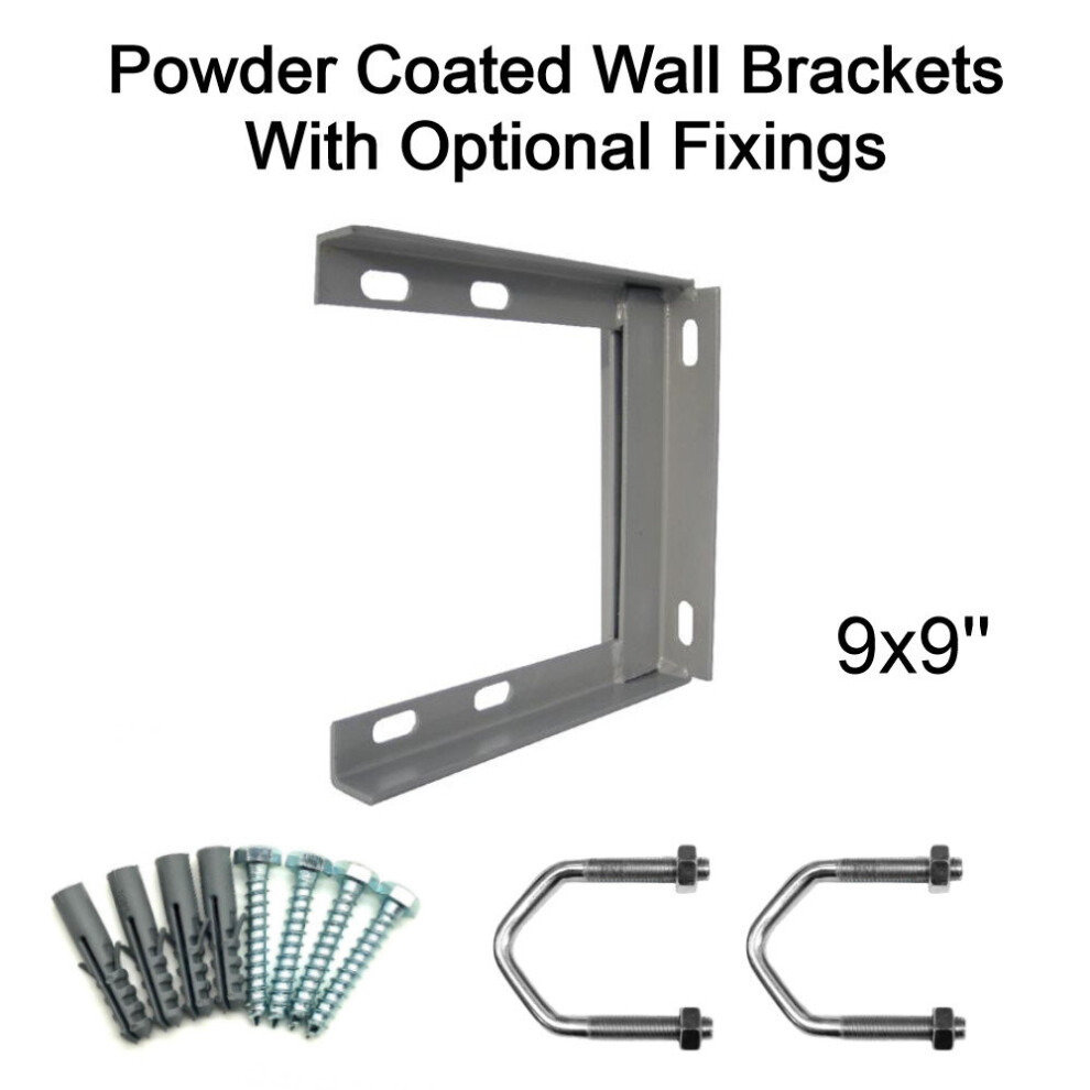 (9'' inch x 9'' inch, 2.5'' U Bolts with 50mm Bolt & Rawlplugs) Powder Coated Steel TV Aerial Wall Mounting Bracket for Pole Mast SAT UHF FM DAB