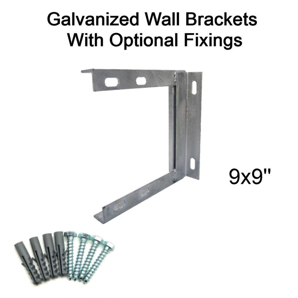 (9'' inch x 9'' inch, 50mm Bolt & Rawlplugs (set of 4)) TV Aerial Galvanised Steel Wall Mounting Bracket for Pole Mast DAB FM SATELLITE